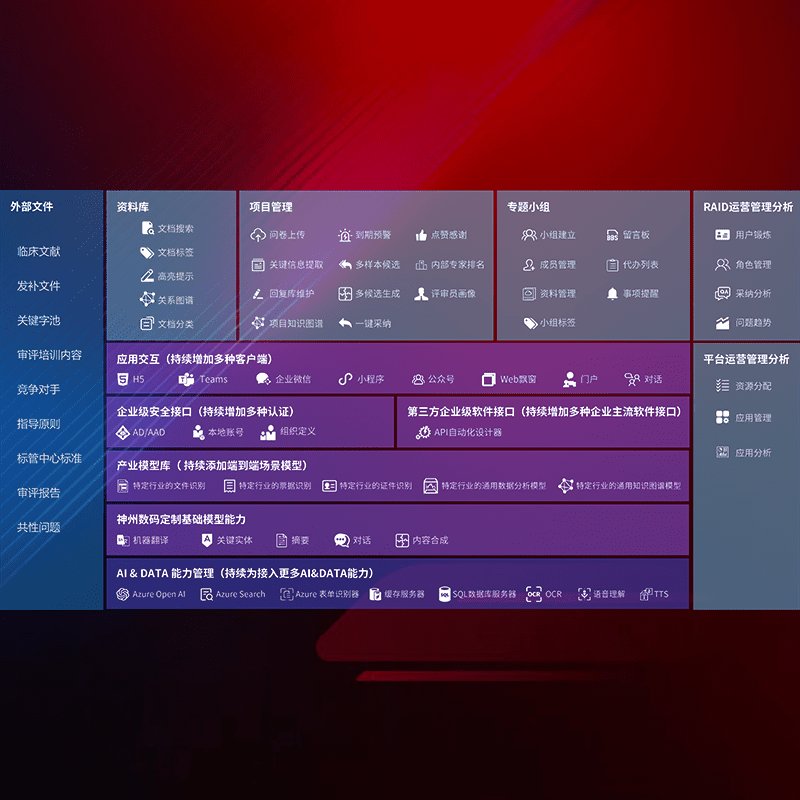 医疗器械产品上市前,,,要熟悉严格与繁复评审标准,,,整理分析监管机构指导文件中的海量信息。。企业急需一个智能化解决方案,,,,提升知识管理效率,,,,提高评审通过率,,,,以提升其市场竞争力。。。。