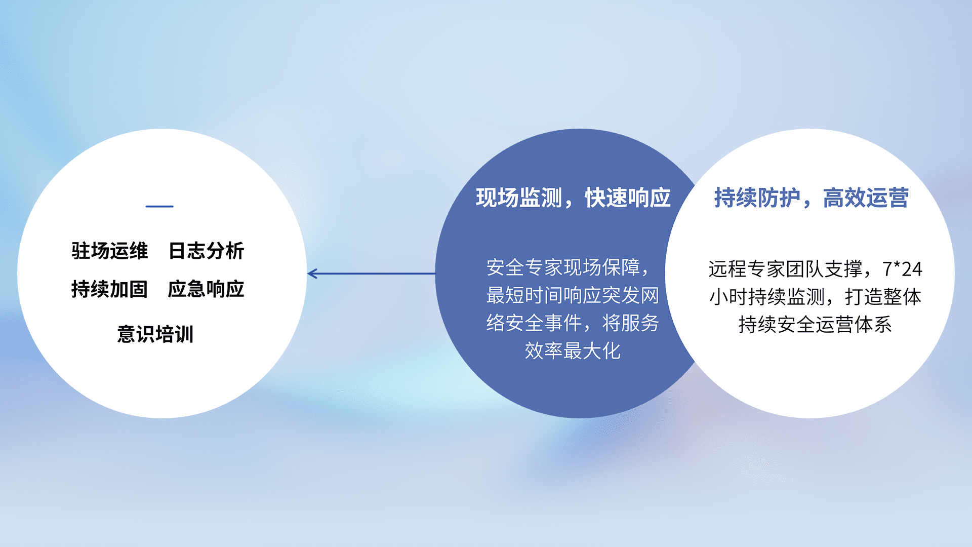 针对客户行业特性,,,提供专属的一站式安全管理服务,,,帮助客户全面感知网络空间威胁,,通过安全专家的线上、、、、线下防护支持,,实现风险闭环,,,将安全保障常态化,,,为客户打造常态化安全运维运营服务。。。